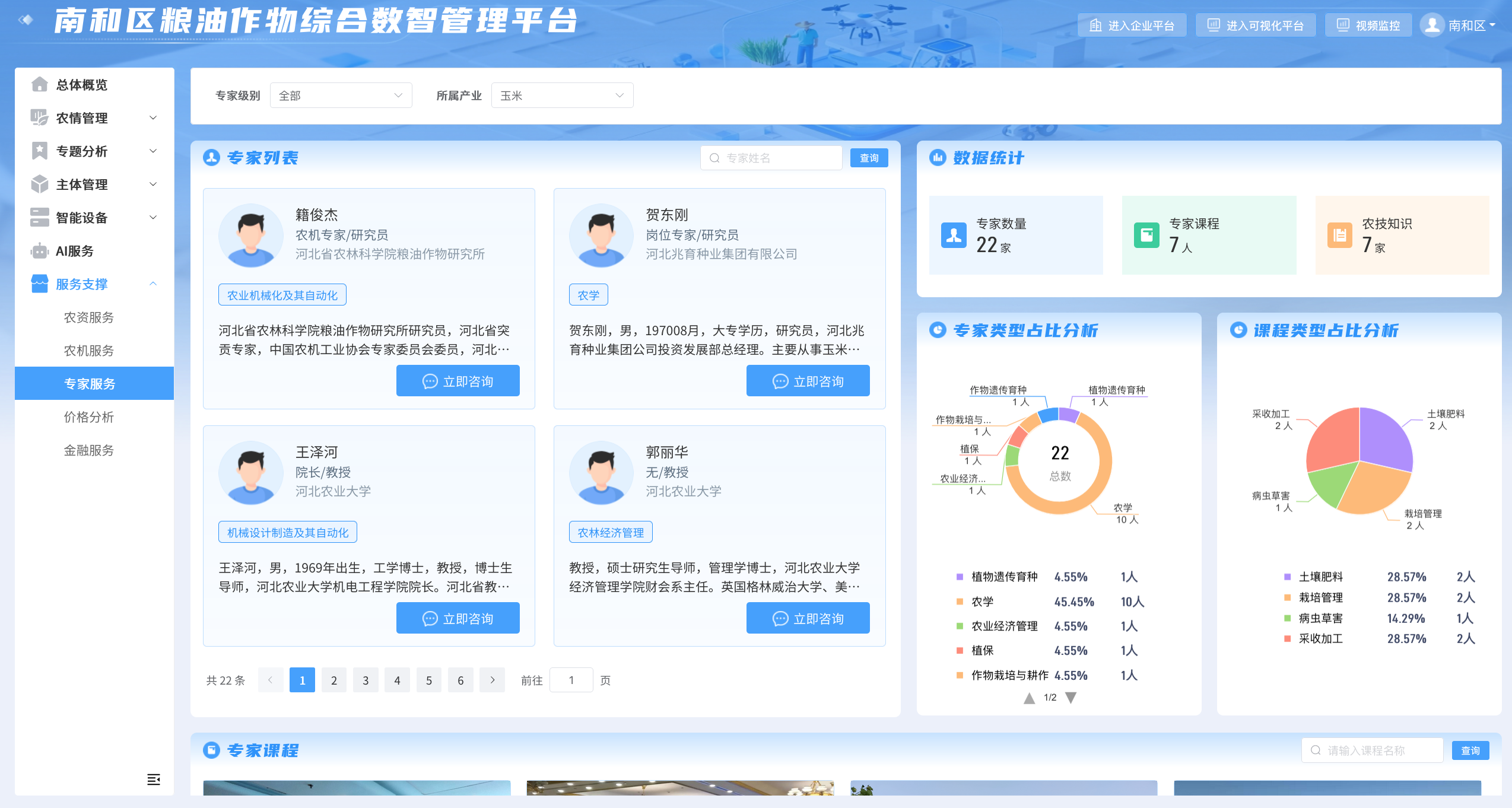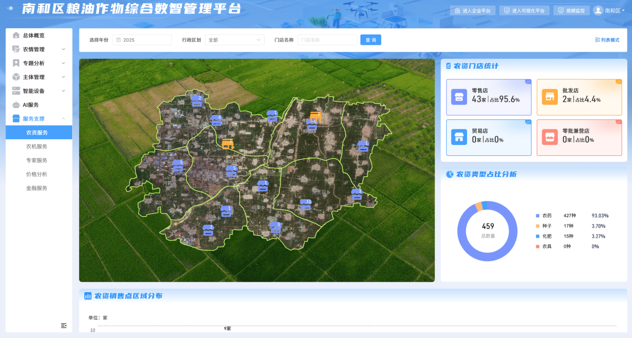 除了精准监测与智能推荐,平台还搭建了一站式农事服务支撑体系。李立博提到,平台已整合全区 43 家农资店、95 辆农机资源及 22 名农业专家,形成 “农资 - 农机 - 专家” 三位一体的服务网络。种植户通过手机 APP 即可快速对接高质量农资、匹配适用农机,随时咨询经验丰富的专家。
