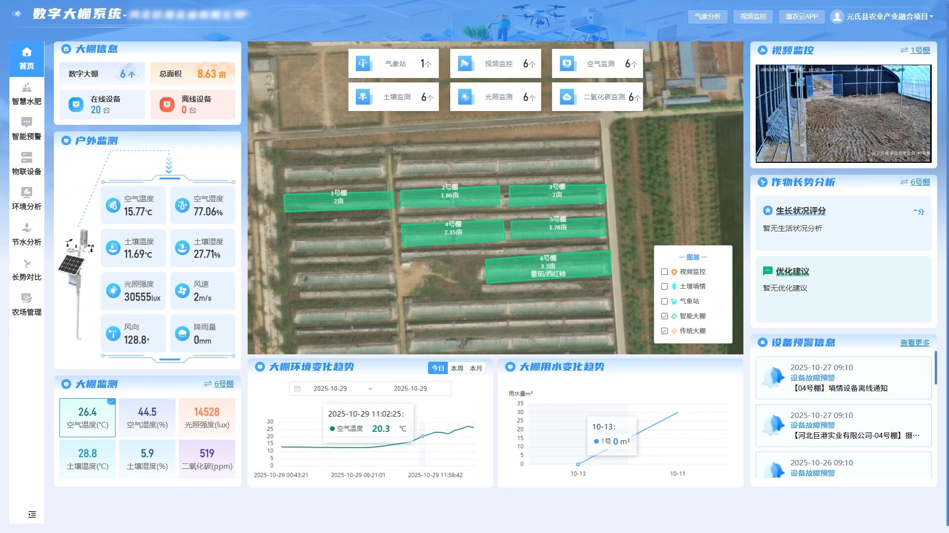 对传统大棚进行智慧化升级后,种植户通过手机或电脑即可远程操控——实时监测大棚温湿度、土壤墒情,自动启动水肥一体化设备精准供给;当环境参数异常时,AI智能预警功能即时提醒,减少病虫害发生,保障蔬菜健康生长。