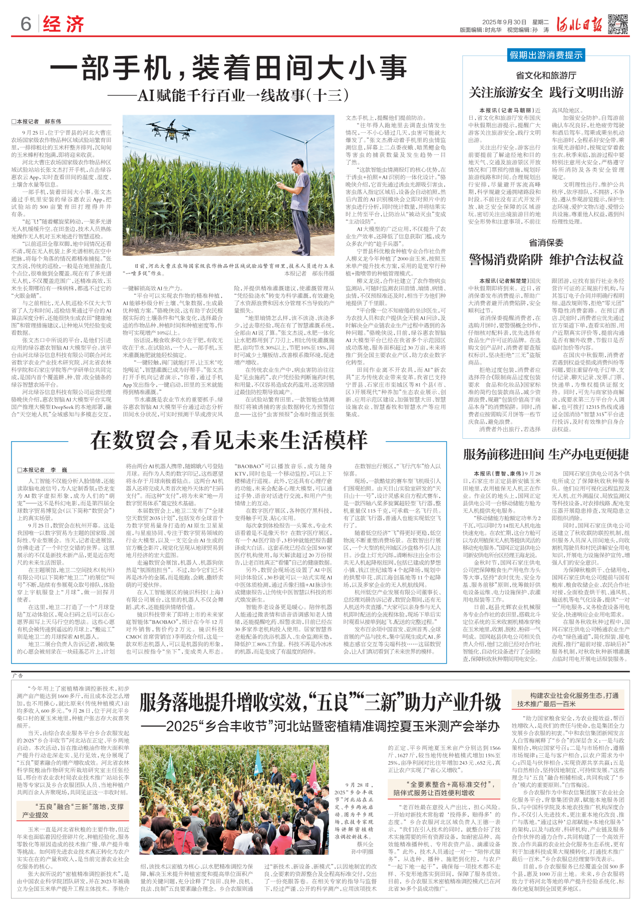田间作业离不开农具,而AI“新农具”正为传统农业带来变革。我省已支持宁晋县、石家庄市栾城区等81个县(市、区)开展现代“种养加”生态农业展示、创新、应用示范区建设,加强智慧大田、智慧设施农业、智慧畜牧和智慧水产等应用集成。