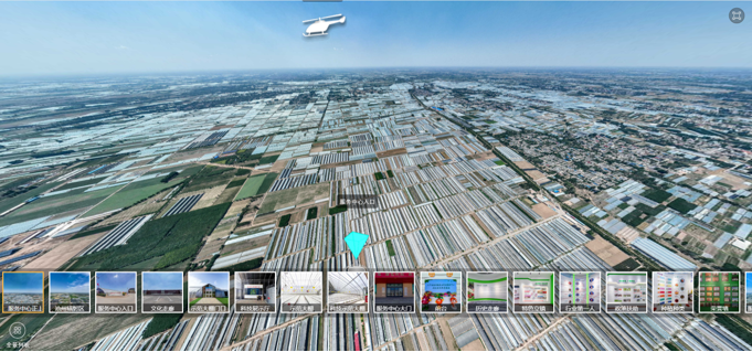 通过实景 VR + 无人机航拍,实现大棚环境可视化、远程监控,实现降本增效。